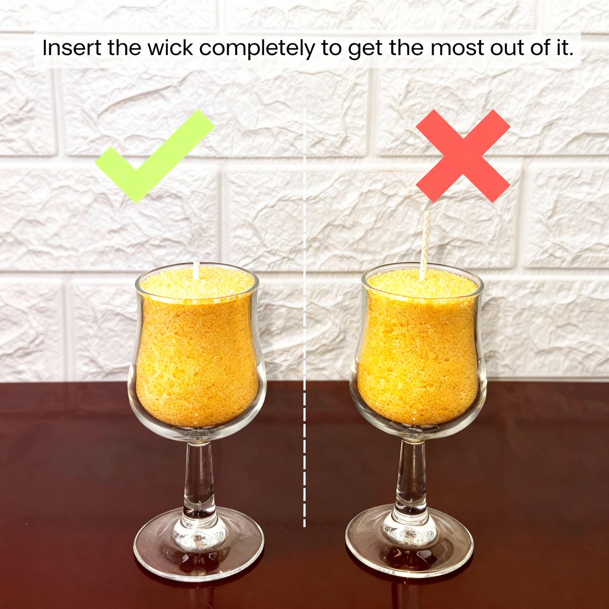 Ignite Your CuriosityInsert the wick so it extends 0.6 cm above the pearls, with at least 5 cm around and 2.5 cm below. Each pack includes 25 wicks, and each lasts up to 12 hours, accompanying your moments of calm and healing.